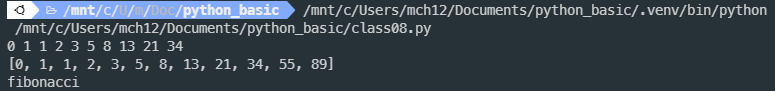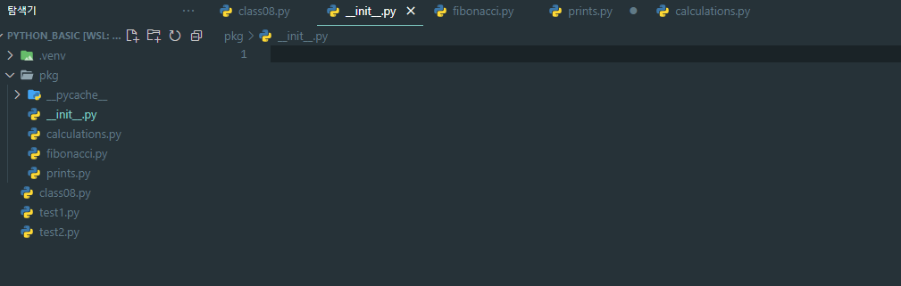 pkg디렉토리 안에 fibonacci.py로 피보나치 수를 계산하는 모듈을 하나 만들었습니다.