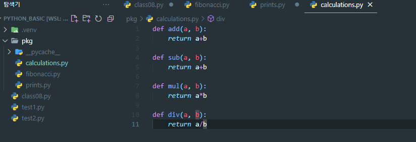 import pkg.calculations as cal 혹은 from pkg.calculations import div as d 등 모두 가능
